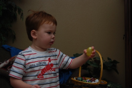 the kids. Bryce had a grand ole time. He had to shake each egg before placing