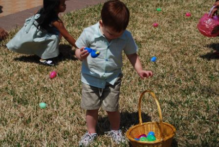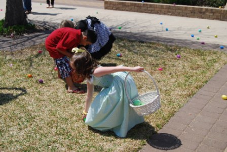 the children's choir at the noon Mass. Then, the teens hosted an egg hunt for